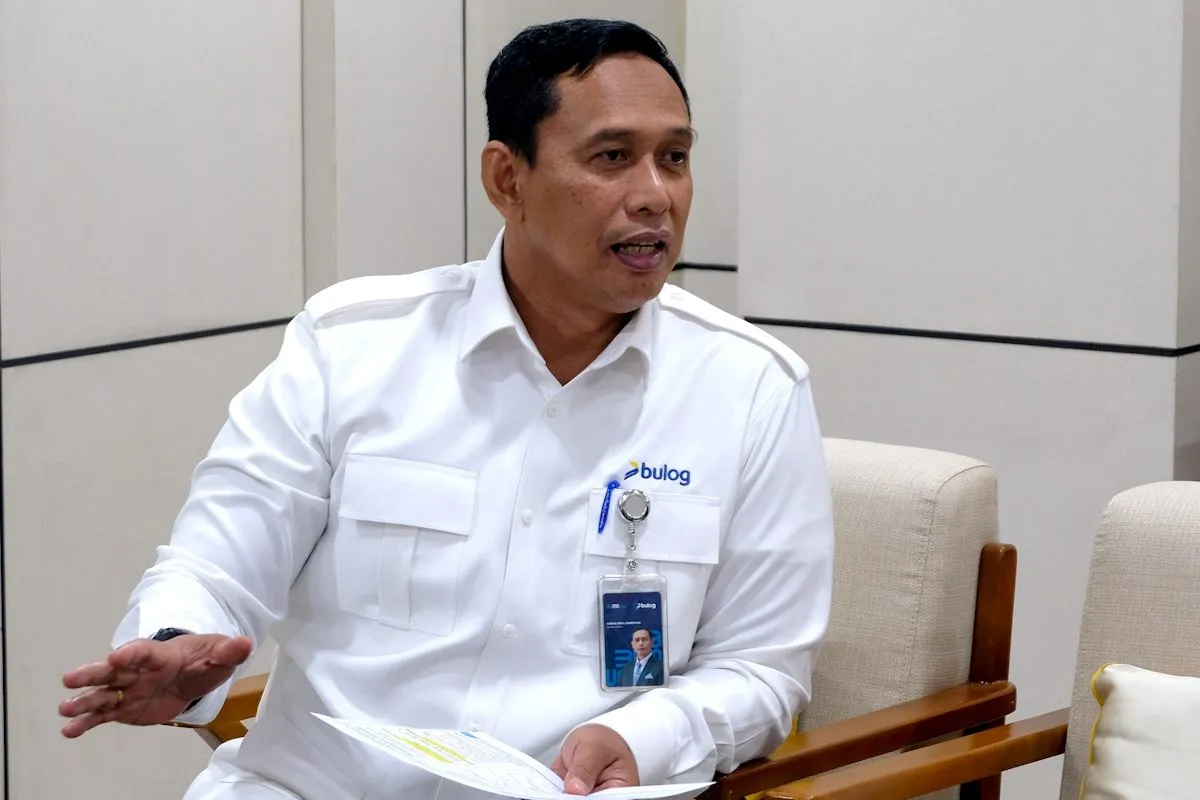 Direktur Utama Perum Bulog Ahmad Rizal Ramdhani berbincang bersama awak media di Jakarta, Senin (29/12/2025)