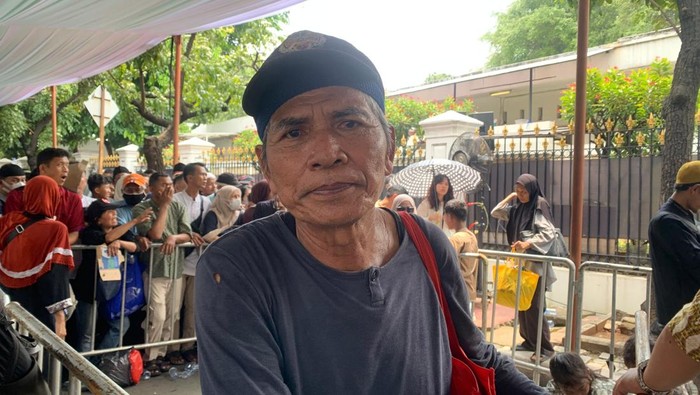 Lansia bernama Slamet Riyadi (63) tersebut sudah datang sejak pagi hari. Ia mulai mengantre sekitar pukul 09.00 WIB di kawasan Gerbang Kementerian Sekretariat Negara, Jakarta Pusat.
