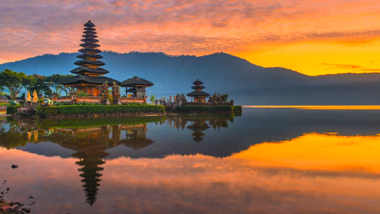 Matahari Terbit Pura Ulun Danu Bratan, Bali. Foto: iStock/Tikus0007