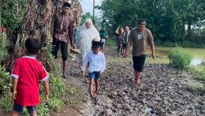 Video yang viral tersebut memperlihatkan perjuangan warga yang tetap berupaya menjalankan ibadah Salat Id meski harus menghadapi kondisi jalan yang sulit. Mereka terlihat tetap melanjutkan perjalanan dengan penuh semangat meski harus berjalan di tengah lumpur.
