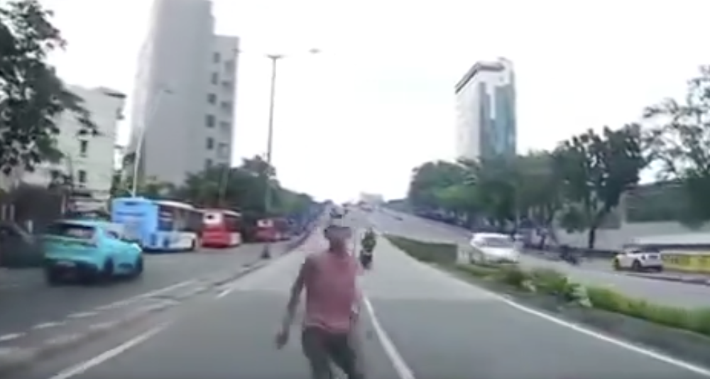 Seketika itu pria tersebut menabrakkan diri dan jatuh di depan mobil. Pria itu lalu pura-pura pingsan. Dia tampak tergeletak di tengah jalan. Sementara kendaraan tetap lalu-lalang di sekitarnya.